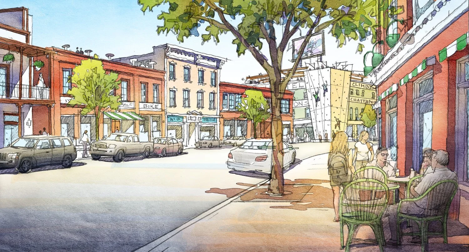 Transect Zones: T1, T2, T3, T4, T5, SDFor a week in January 2014, MWA set up an office in South Chattanooga Recreation Center and invited the public to work with us to prepare a masterplan for St. Elmo…[Read more]