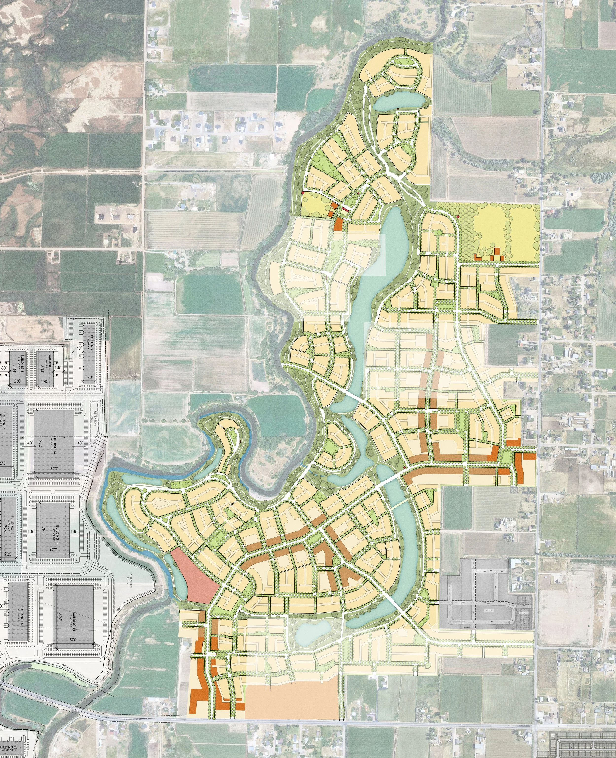 A key feature of the master plan is the “Emerald Necklace” park system, an idea proposed by local park advocates. It is a series of interconnected parks and greens that seamlessly weave together the river, slough, and the surrounding neighborhoods. This natural loop forms a scenic corridor that enhances community life by linking recreational spaces and providing a beautiful backdrop for everyday activities.